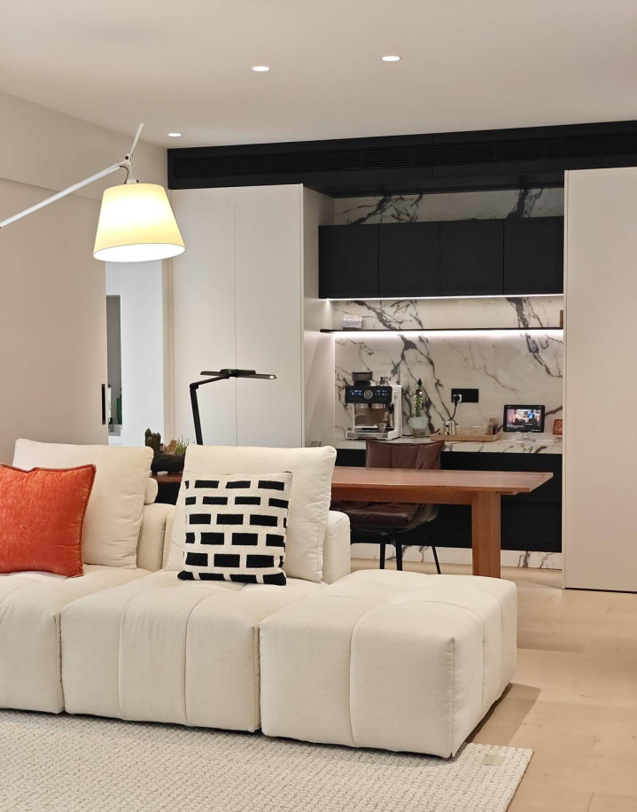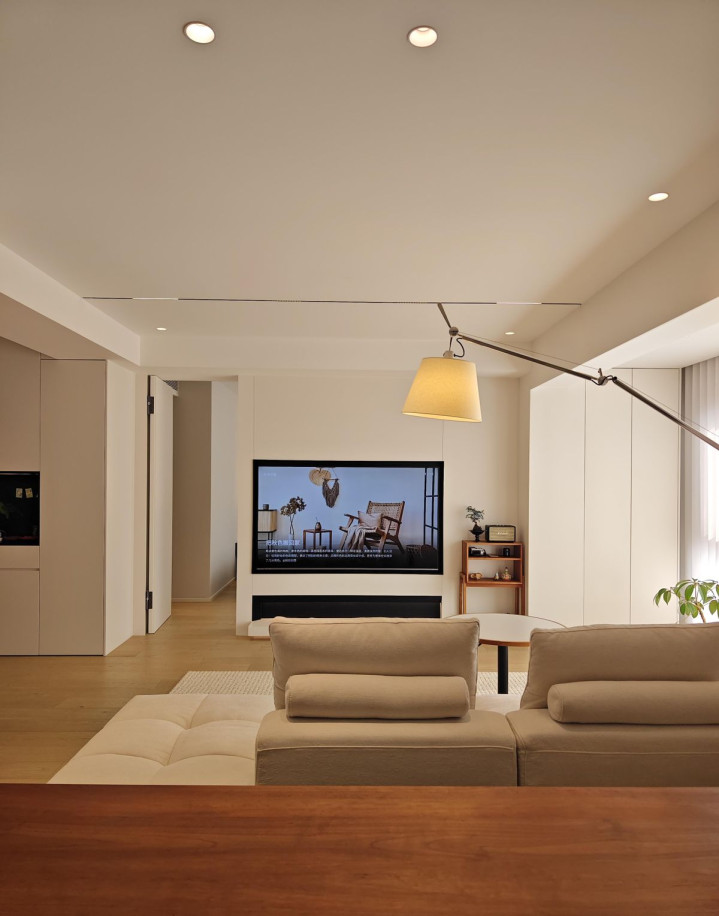这套128平米的现代住宅,呈现出一种别样的精致韵味。空间选择了温暖的米色调与柔和的木质纹理作为基调,黑色透明柜体与天然石材质感形成鲜明对照,为空间注入了些许冷静气息。客厅那张沙发,触感极为绵软,仿佛云朵般轻盈,坐上去便有种被温柔包裹的感觉,实在难以起身离开。