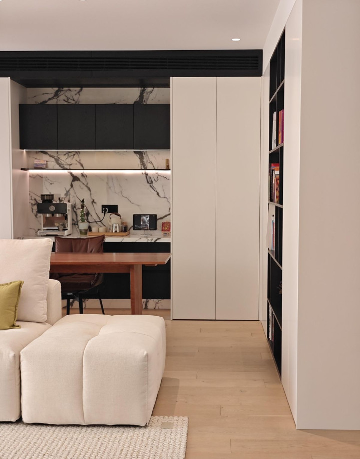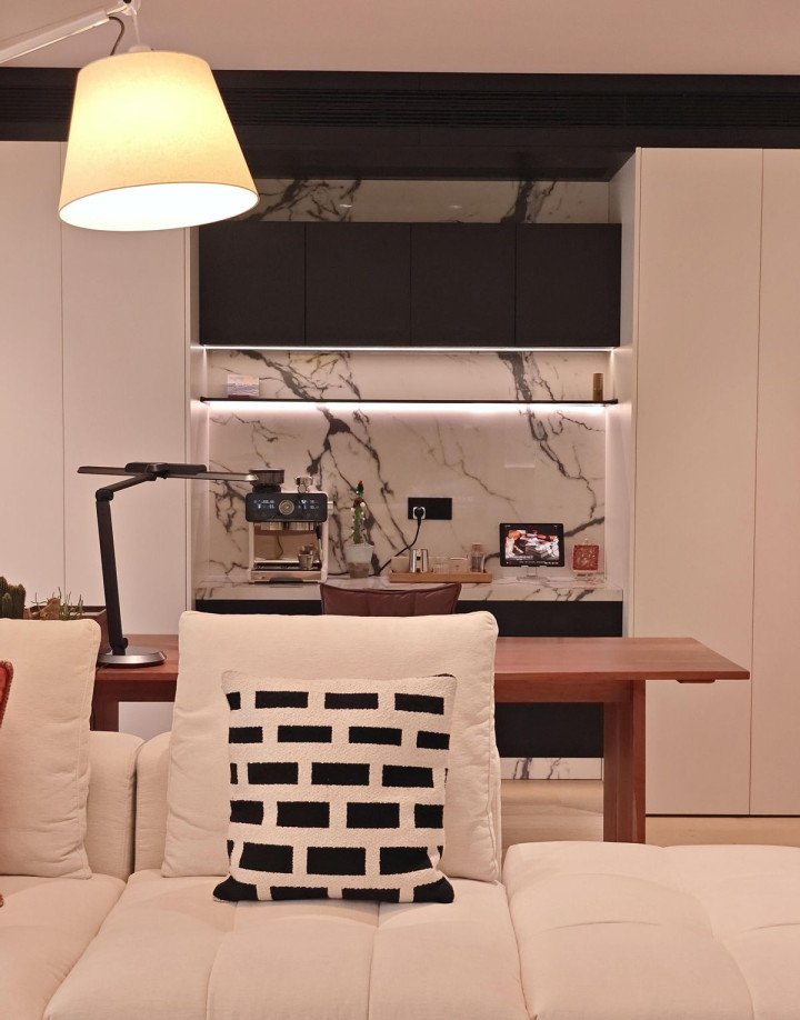 不同材质间的碰撞,加上光影的巧妙配合,营造出了空间的独特美感。那些嵌入墙体的储物空间、私人的咖啡小天地,以及专门为亲子互动打造的区域,都被巧妙地隐藏在这简约的外表之下。各个功能区域既相互融合又保持着各自的独立性,真正做到了视觉美感与实用性能的兼顾。
